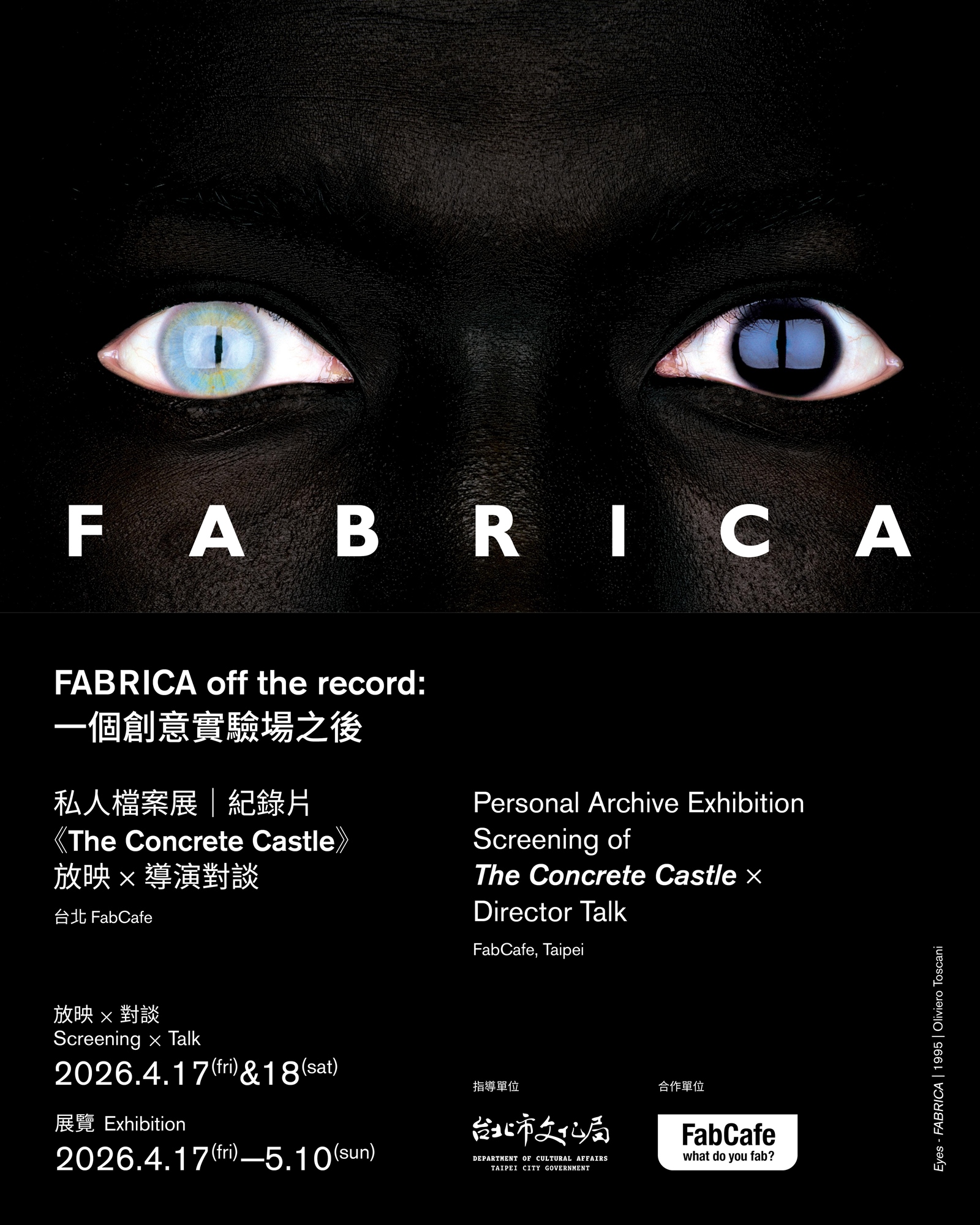 以義大利創意研究中心 Fabrica 為主題的展覽 「FABRICA Off the Record:一個創意實驗場之後」,將於 4 月 17 日至 5 月 10 日於 FAB CAFE 登場。展覽以兩位主辦人的私人典藏為基礎,呈現 COLORS 雜誌、Fabrica 出版物與相關設計作品,並透過短片《The Concrete Castle》亞洲首映與導演對談,回望這個曾深刻影響全球創意工作的駐村機構。