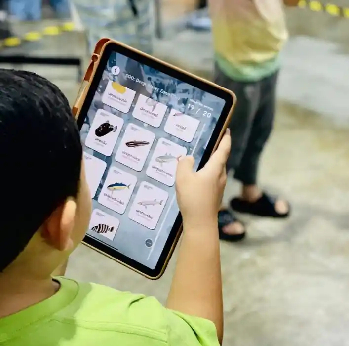 第一個模組「Get to Know(了解)」,以「安達曼海潛水圖書館(Andaman Sea Diving Library)」為主軸,這是一款運用 擴增實境(AR) 與 虛擬實境(VR) 技術打造的互動式學習工具,讓年輕世代能更投入地認識海洋。