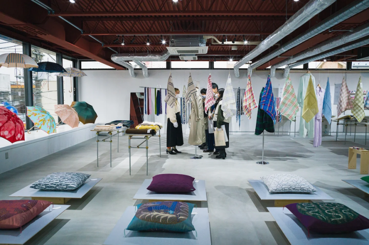 為了讓到訪者都能親自觸摸、感受展覽中織品的魅力,現場特別規劃了一間精選快閃店,販售來自山梨縣的嚴選紡織產品。